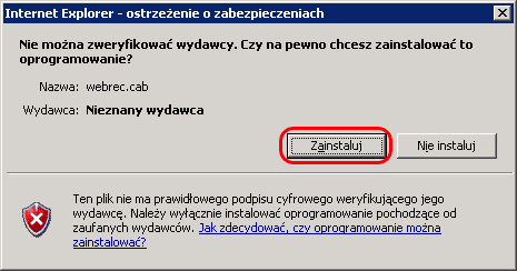 Poniżej opiszemy skonfigurowanie przeglądarki Internet Explorer do korzystania z podglądu kamer.