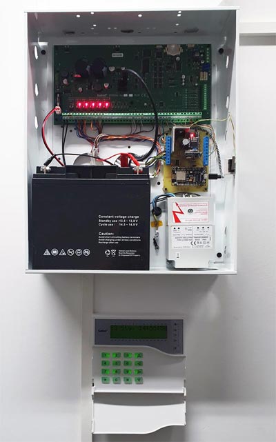 - Współpraca z modułem SMS - wysyłanie komunikatów o alarmach.